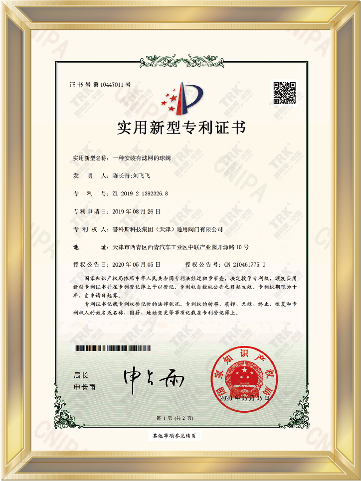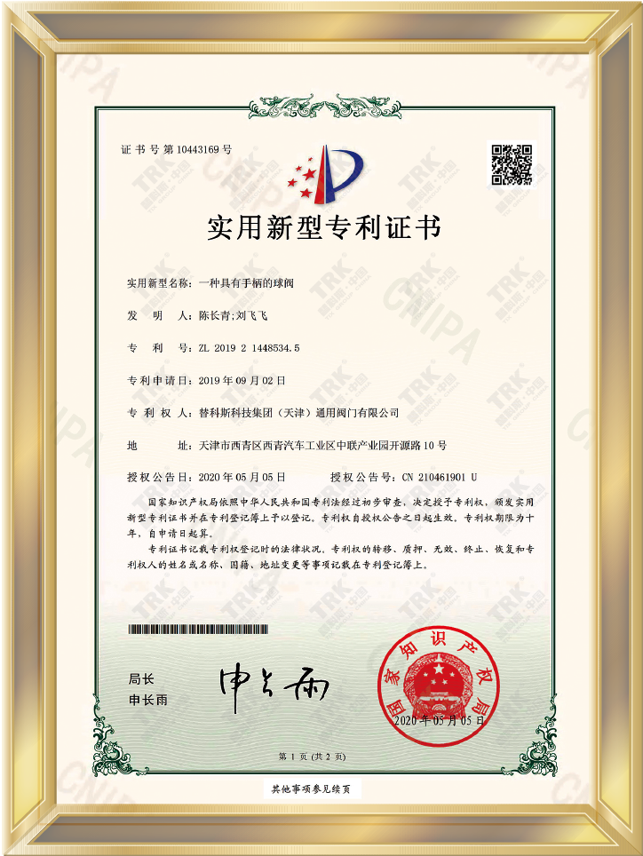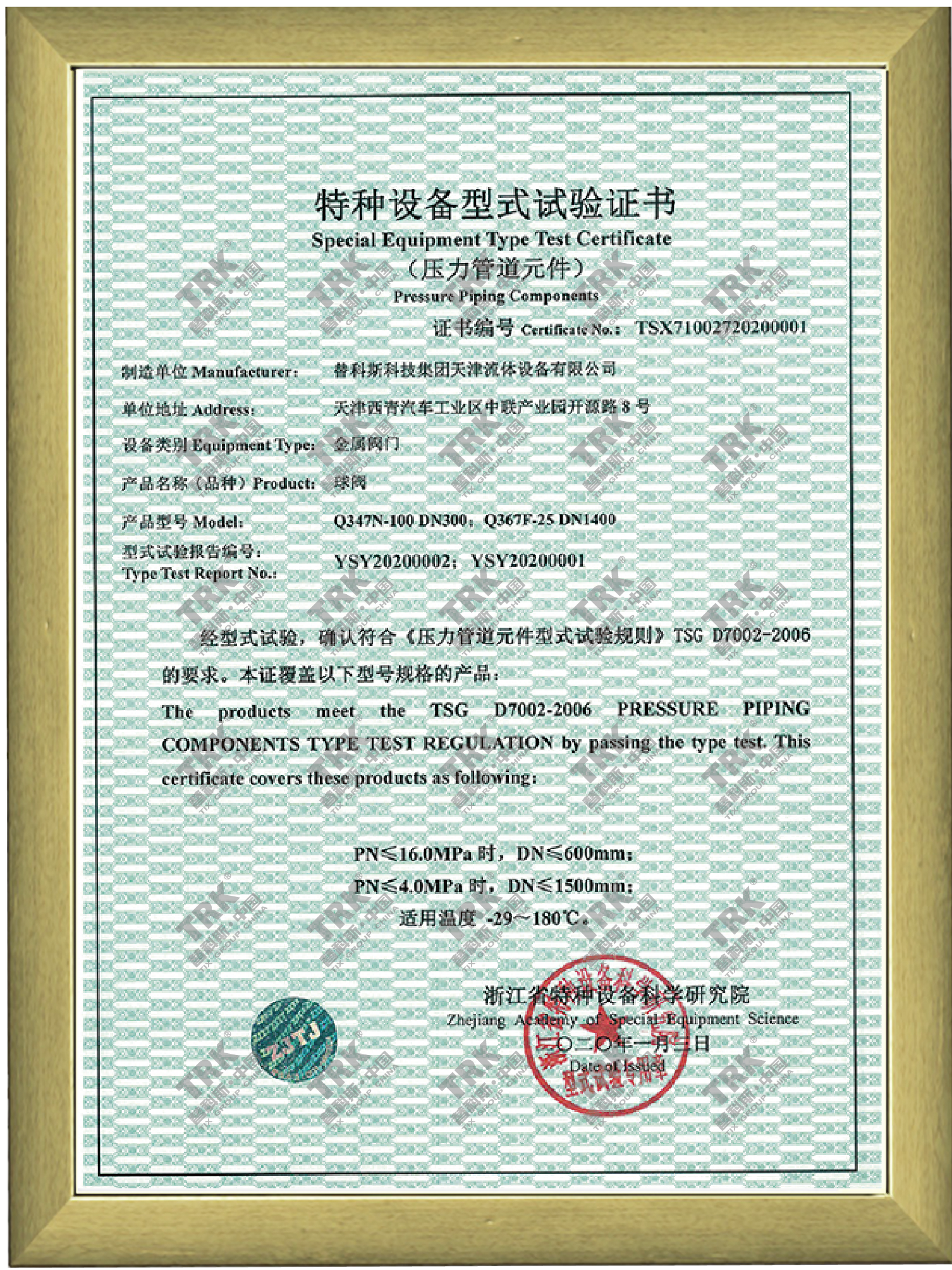 特種設備型式試驗證書-球閥