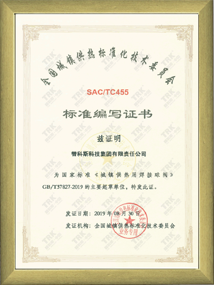 標準編寫證書-城鎮供熱用焊接球閥