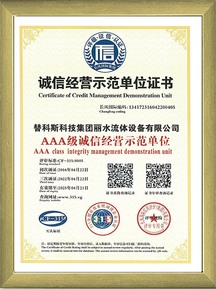 3A級誠信經營示范單位
